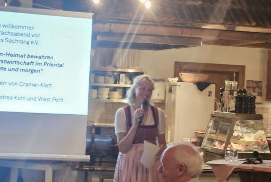 Monika Pfaffinger vom Vorstand des Vereins Lebendiges Sachrang begrüßte die zahlreichen Gäste in der Schlossbergalm Hohenaschau.
