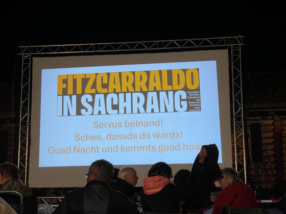 Am ersten Freitag und Samstag dieses Julis veranstalteten der Verein „Lebendiges Sachrang“ und der „Heimat- und Geschichtsverein Aschau i.Ch.“ gemeinschaftlich ein Werner Herzog Open Air-Kino. Titel: „Fitzcarraldo in Sachrang“, benannt nach einem der berühmtesten Werner Herzog-Filme überhaupt und dem Ort seiner Kindheit, dem Bergsteigerdorf Sachrang. Es wurden zwei magische und wohl unvergessliche Abende mit begeisterten Zuschauern. Denn vor den Filmaufführungen durften sie sich über ebenso entspannte wie interessante Gespräche mit Menschen freuen, die beim Entstehen der Filme „Radical Dreamer“ und „Fitzcarraldo“ wesentlich mitwirkten.